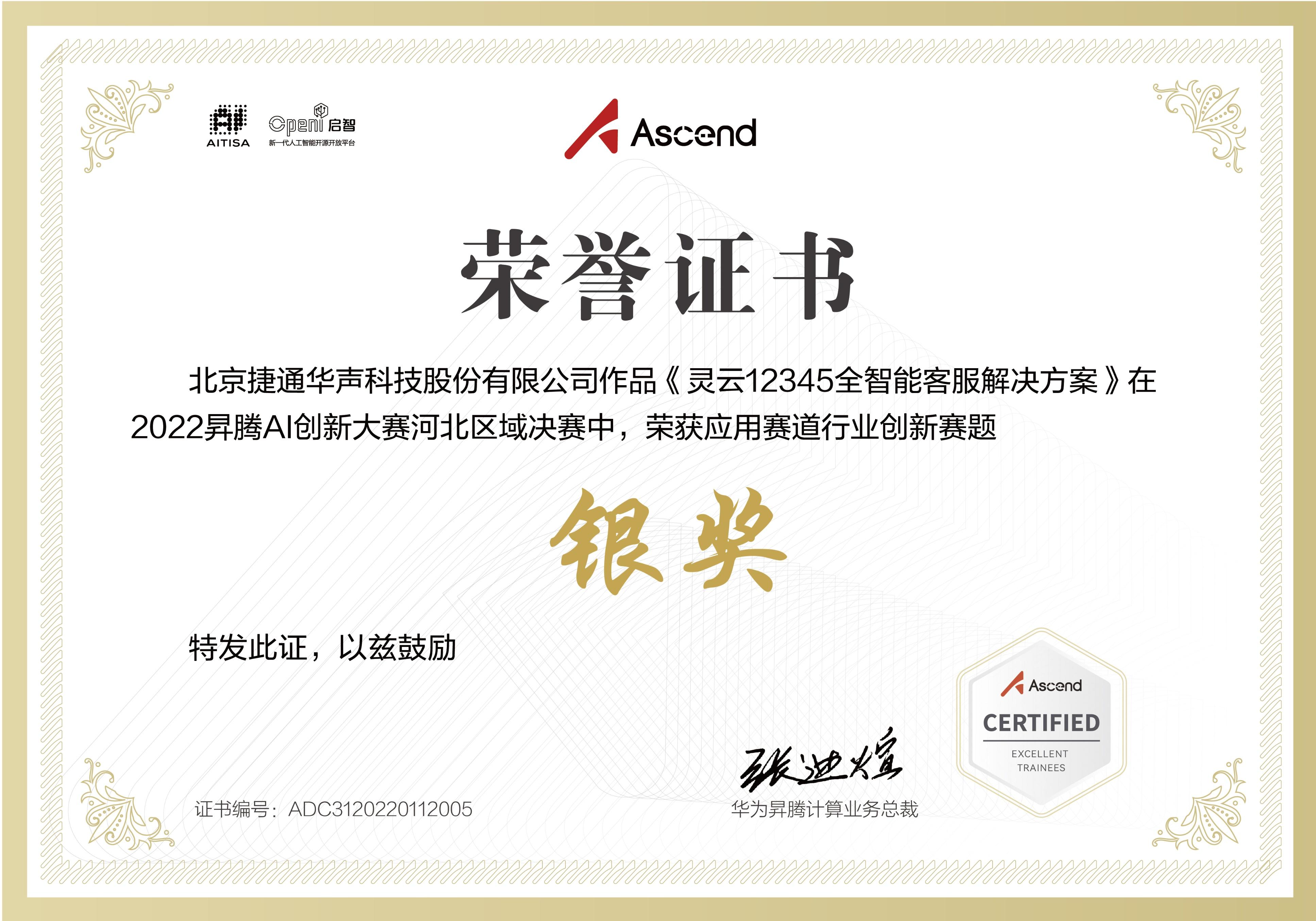 近日,以“智領(lǐng)廊坊·冀往開來”為主題的昇騰AI創(chuàng)新大賽2022河北區(qū)域賽決賽圓滿落幕。京津冀高校、科研機(jī)構(gòu)、企業(yè)共60余支團(tuán)隊報名參賽,最終30支團(tuán)隊入圍決賽。捷通華聲推出的靈云12345智能政務(wù)熱線解決方案憑借在對接數(shù)字政府“一網(wǎng)通辦”,落實“接訴即辦” 響應(yīng)機(jī)制過程中的智能化和數(shù)字化支撐,以及過硬的技術(shù)實力斬獲銀獎。
