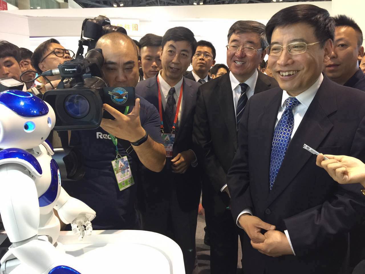 靈云科技5月30日消息:26日,工業(yè)和信息化部主辦的“2016第二十屆中國國際軟件博覽會”在北京展覽館舉辦。工信部部長苗圩到訪捷通華聲,與靈云智能機(jī)器人進(jìn)行了親密對話,靈云機(jī)器人不僅展現(xiàn)了“能說會聽”的魅力,還展現(xiàn)出“能思考、會判斷”的智慧,得到了苗部長及廣大與會人員的高度贊賞。