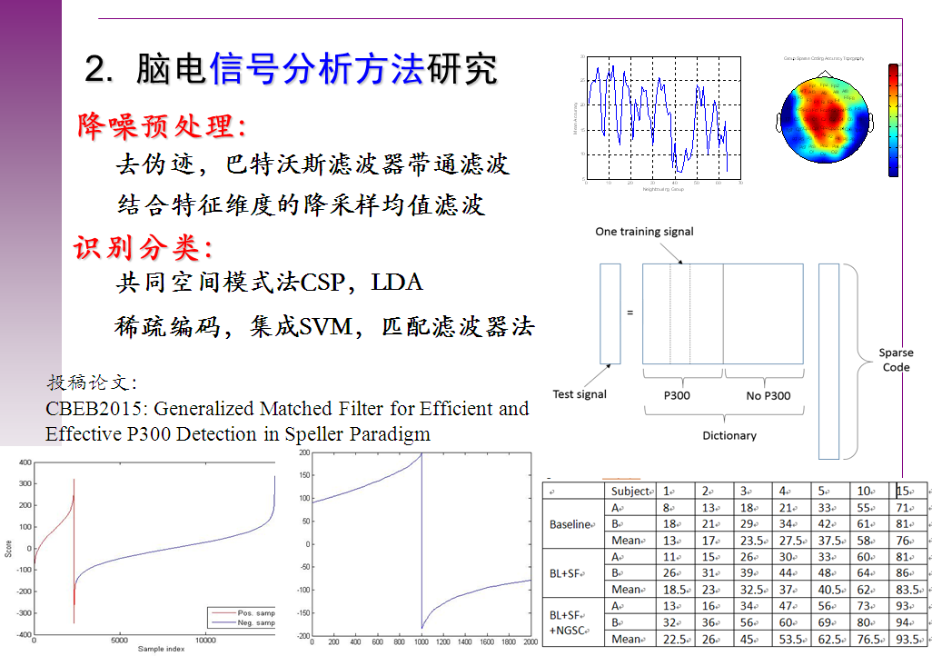 2、現(xiàn)有方法針對(duì)腦電信號(hào)多通道、強(qiáng)噪聲特點(diǎn),有效降噪方法和分類理論尚不完善 。