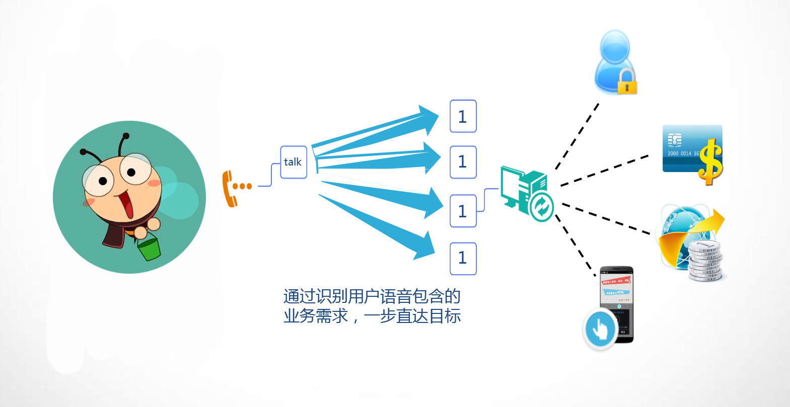 業(yè)務(wù)規(guī)模增長(zhǎng),只能靠增加話務(wù)員(人工成本,培訓(xùn)成本,重復(fù)工作、流失嚴(yán)重),來(lái)緩解壓力,未能從根本上解決問(wèn)題。其中最最關(guān)鍵原因是:傳統(tǒng)IVR,層級(jí)劃分不清,各級(jí)選項(xiàng)多,選項(xiàng)排序不合理,按鍵機(jī)械繁瑣,等待時(shí)間長(zhǎng)。靈云君獻(xiàn)出錦囊妙計(jì)一條,用靈云智能語(yǔ)音導(dǎo)航。