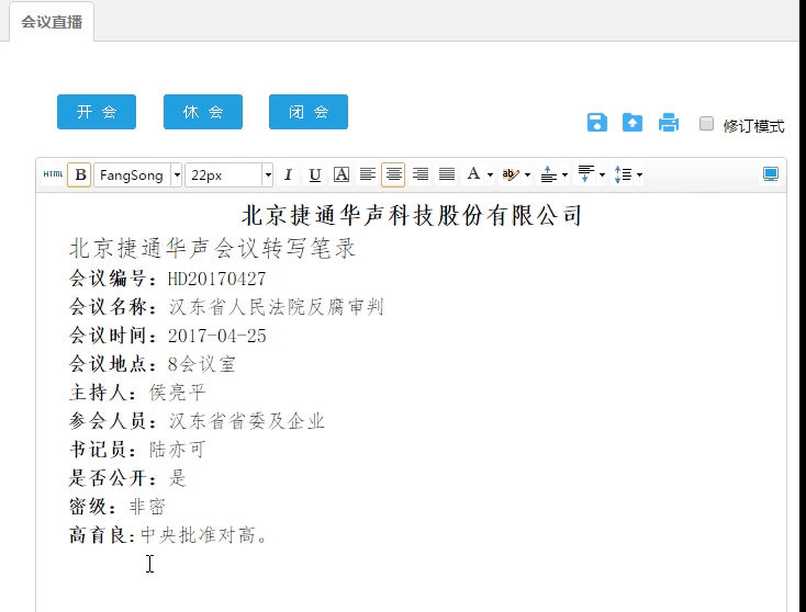 1、靈云智能會(huì)議系統(tǒng):公檢法各級(jí)部門會(huì)議,精準(zhǔn)記錄會(huì)議發(fā)言,快速生成會(huì)議記錄;