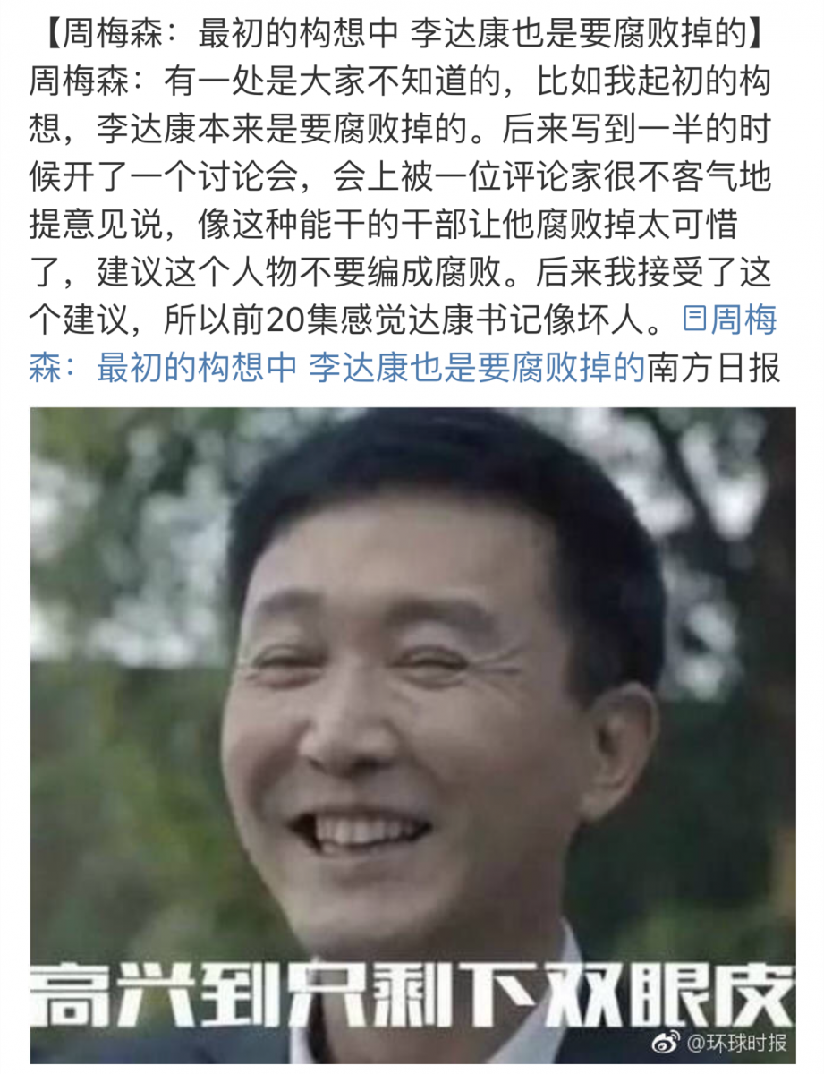 在全國人民都熱議這部反貪大劇時(shí),也有不少關(guān)于劇情的內(nèi)幕爆出,例如編劇周梅森起初曾構(gòu)想,李達(dá)康本來是要腐敗掉的。