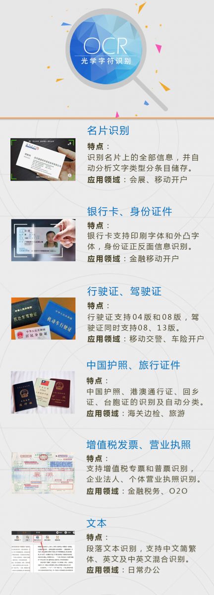 無論是互聯(lián)網(wǎng)金融企業(yè)識別用戶提交上來的身份證、銀行卡信息,保險公司整理客戶提交的行駛證、駕照信息,還是旅行社核實游客提交的護照信息,靈云智能圖像識別系統(tǒng)的推出,將改變眾多公司雇傭大量人工來錄入信息的現(xiàn)狀,讓企業(yè)擺脫人工成本困境,全面提升信息采錄的準確性和效率。