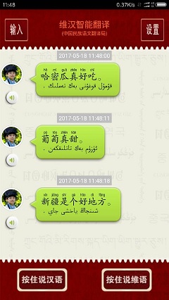 看看下面這些翻譯APP,應(yīng)用了捷通華聲的靈云AI技術(shù),可以進(jìn)行實(shí)時(shí)語(yǔ)音互譯:只要點(diǎn)按鈕說(shuō)漢語(yǔ),就能自動(dòng)翻譯并說(shuō)出維吾爾語(yǔ)或其他語(yǔ)言,簡(jiǎn)直是隨身翻譯官。