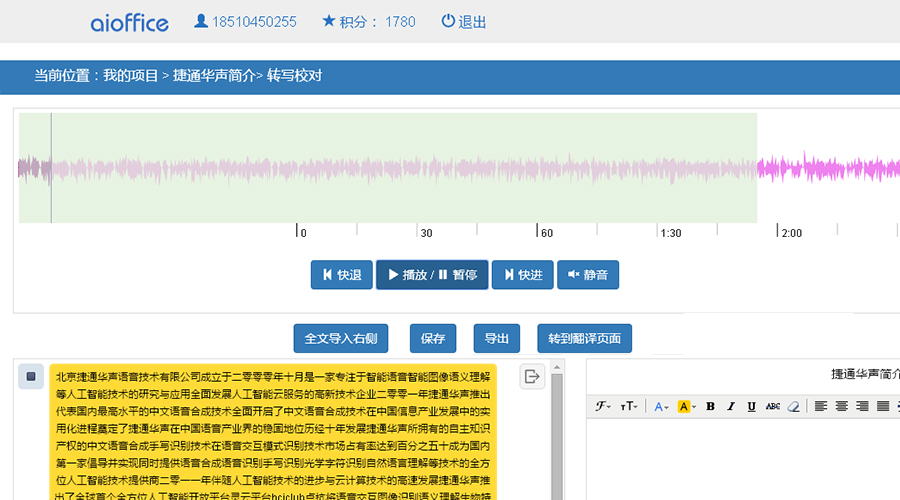 其實(shí),在靈云平臺(www.aicloud.com)上,已經(jīng)有上千萬的用戶在使用名為AIoffice的靈云智能辦公平臺,輕松實(shí)現(xiàn)長錄音轉(zhuǎn)寫。靈云智能辦公平臺的長錄音轉(zhuǎn)寫不僅支持普通話,還能支持維吾爾語、英語等語言的識別,甚至支持帶有方言口音的普通話識別,識別正確率能達(dá)到96%以上。