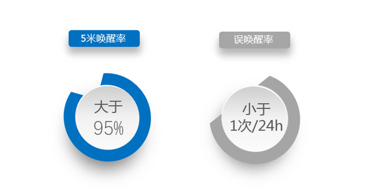 語(yǔ)音喚醒:新升級(jí)的麥克風(fēng)陣列支持1個(gè)或者多個(gè)喚醒詞,且喚醒詞可定制,并支持第三方喚醒詞,5米喚醒率 > 95%,誤喚醒率 < 1次/24小時(shí);