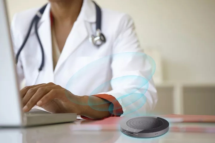 近期,捷通華聲面向醫(yī)療領(lǐng)域重磅推出具有遠(yuǎn)場(chǎng)語(yǔ)音識(shí)別功能的靈云醫(yī)療智能語(yǔ)音錄入方案。該方案采用靈云麥克——環(huán)形4麥克風(fēng)(MIC)陣列,可以定向、遠(yuǎn)距離獲取醫(yī)生的聲音,然后通過(guò)醫(yī)療專(zhuān)用的語(yǔ)音識(shí)別模型識(shí)別語(yǔ)音,讓醫(yī)生能自由、精準(zhǔn)、快速地用語(yǔ)音書(shū)寫(xiě)病歷。