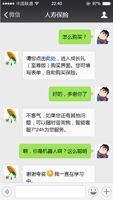 客戶通過智能客服,自助咨詢、購買、理賠保險