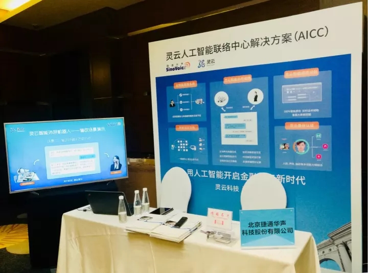 捷通華聲在會(huì)上分享了靈云智能外呼機(jī)器人在金融催收領(lǐng)域的應(yīng)用,并展示了靈云全智能客服、靈云智能語音分析、靈云身份認(rèn)證系統(tǒng)等多款人工智能解決方案,引發(fā)了與會(huì)人員的濃厚興趣和廣泛關(guān)注。
