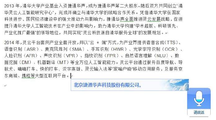靈云語音識別技術已成功應用于公檢法、政府、軍隊、企業(yè)、教育等眾多領域。捷通華聲愿攜手更多的行業(yè)伙伴,共同推動靈云語音轉錄產(chǎn)品服務更多的行業(yè)和領域。