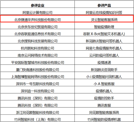 為了讓更多民眾獲得專業(yè)的咨詢服務(wù),便于相關(guān)單位根據(jù)需求選擇合適的產(chǎn)品,中國人工智能產(chǎn)業(yè)發(fā)展聯(lián)盟(以下簡稱:AIIA聯(lián)盟)通過技術(shù)測試、材料審查和企業(yè)披露等方式,依托中國信息通信研究院和人工智能關(guān)鍵技術(shù)和應(yīng)用評測工業(yè)和信息化部重點實驗室,開展了面向疫情防控在線服務(wù)機器人的評估測試。捷通華聲作為AIIA聯(lián)盟成員,攜新冠肺炎疫情防控智能機器人系統(tǒng)(靈云智能客服)參與此次評選,且在各項指標(biāo)上均有出色表現(xiàn)。
