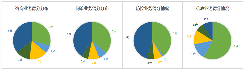針對不同疫情防控場景,評測人員選取了不同的測試數(shù)據(jù),根據(jù)產(chǎn)品對語料的反饋相關(guān)度設(shè)置了0-4分五級評分標(biāo)準(zhǔn)。通過測試結(jié)果得出,多數(shù)產(chǎn)品對咨詢、問診和防控業(yè)務(wù)場景支持能力較好,高效回復(fù)率分別達到35.6%、40.9%、45.0%,有效回復(fù)率分別達到70.6%、63.4%、60.0%。