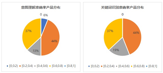 總體來看,各家參評產(chǎn)品在關(guān)鍵詞識別和意圖理解能力上參差不齊,準(zhǔn)確率最高值與最低值相差都超過了50個百分點。在關(guān)鍵詞識別能力上,有6款產(chǎn)品的準(zhǔn)確率超過60%,基本可以識別出“新型冠狀病毒”、“N95口罩”、“發(fā)燒干咳”、“密切接觸者”等疫情強相關(guān)詞匯,以進行關(guān)鍵詞匹配和擴展,確保答復(fù)的準(zhǔn)確性和豐富性。在意圖理解能力上,有7款產(chǎn)品的準(zhǔn)確率超過50%,可對用戶提出的問題有針對性的進行答復(fù)、相關(guān)問題推送和情緒安撫,從而提供精確、及時、有效的服務(wù)。