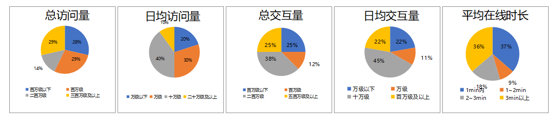 在本輪評測中,除上述功能和性能指標(biāo)外,還統(tǒng)計了截至2月12日各參評產(chǎn)品的訪問量、交互量以及用戶平均在線時長情況。