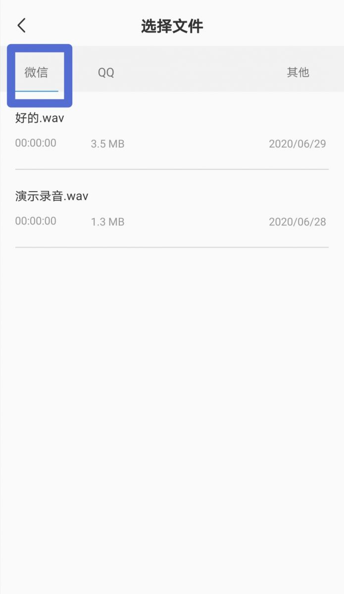 【靈云聽語】App版的“導入音頻轉寫”功能,可以自動篩選出手機中存儲的所有mp3、wav、m4a、amr格式文件,并可以將微信和QQ中的音頻文件進行單獨分類,方便您快速找到想要進行語音轉寫的錄音。