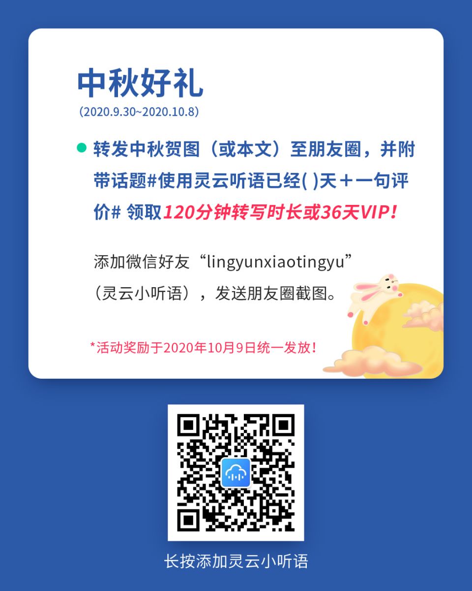不知不覺,【靈云聽語】已經(jīng)上線3個月了,我們非常感激大家對產(chǎn)品的支持與厚愛!并希望與大家一起分享中秋團(tuán)圓的美好!在此特設(shè)中秋好禮(限時活動):