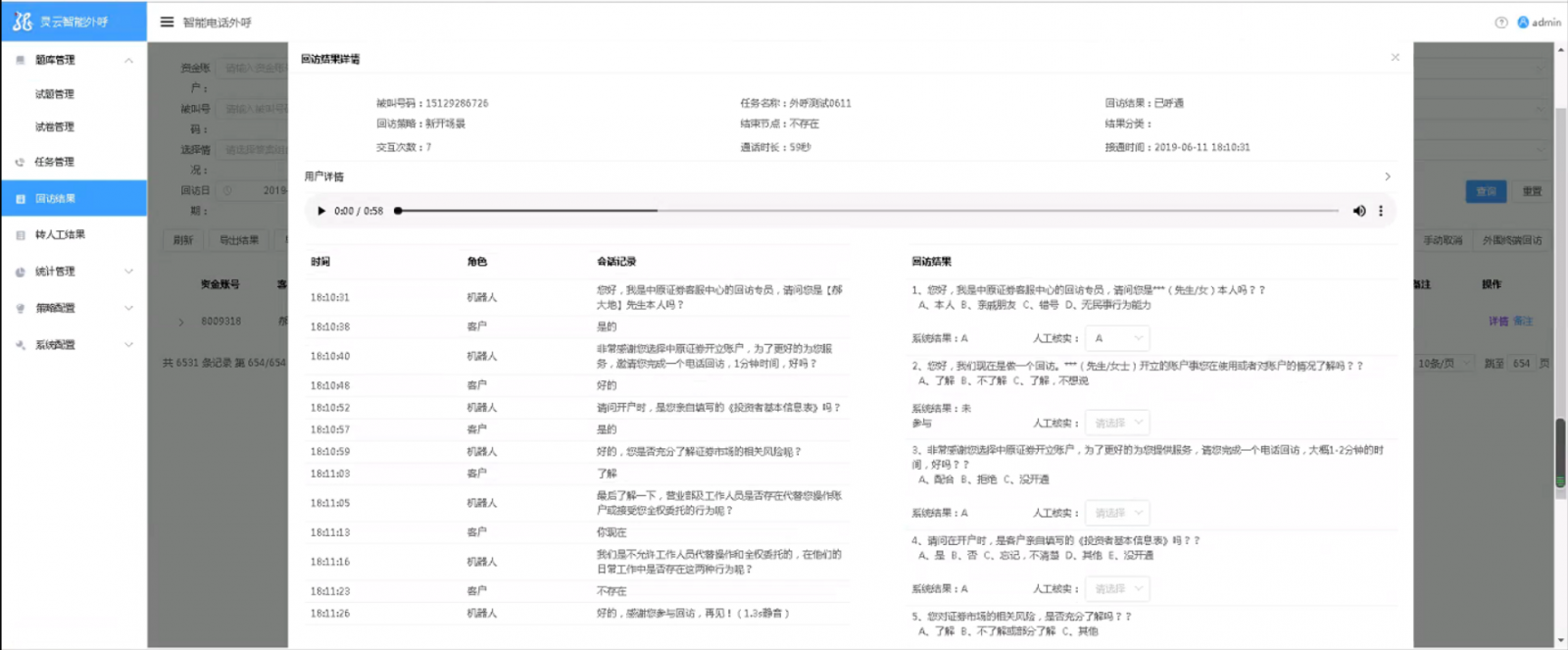 在此項(xiàng)目中,捷通華聲靈云外呼機(jī)器人還與中原證券業(yè)務(wù)系統(tǒng)進(jìn)行了深度集成,實(shí)現(xiàn)了自動化外呼、外呼結(jié)果回傳業(yè)務(wù)系統(tǒng),讓外呼管理更方便。