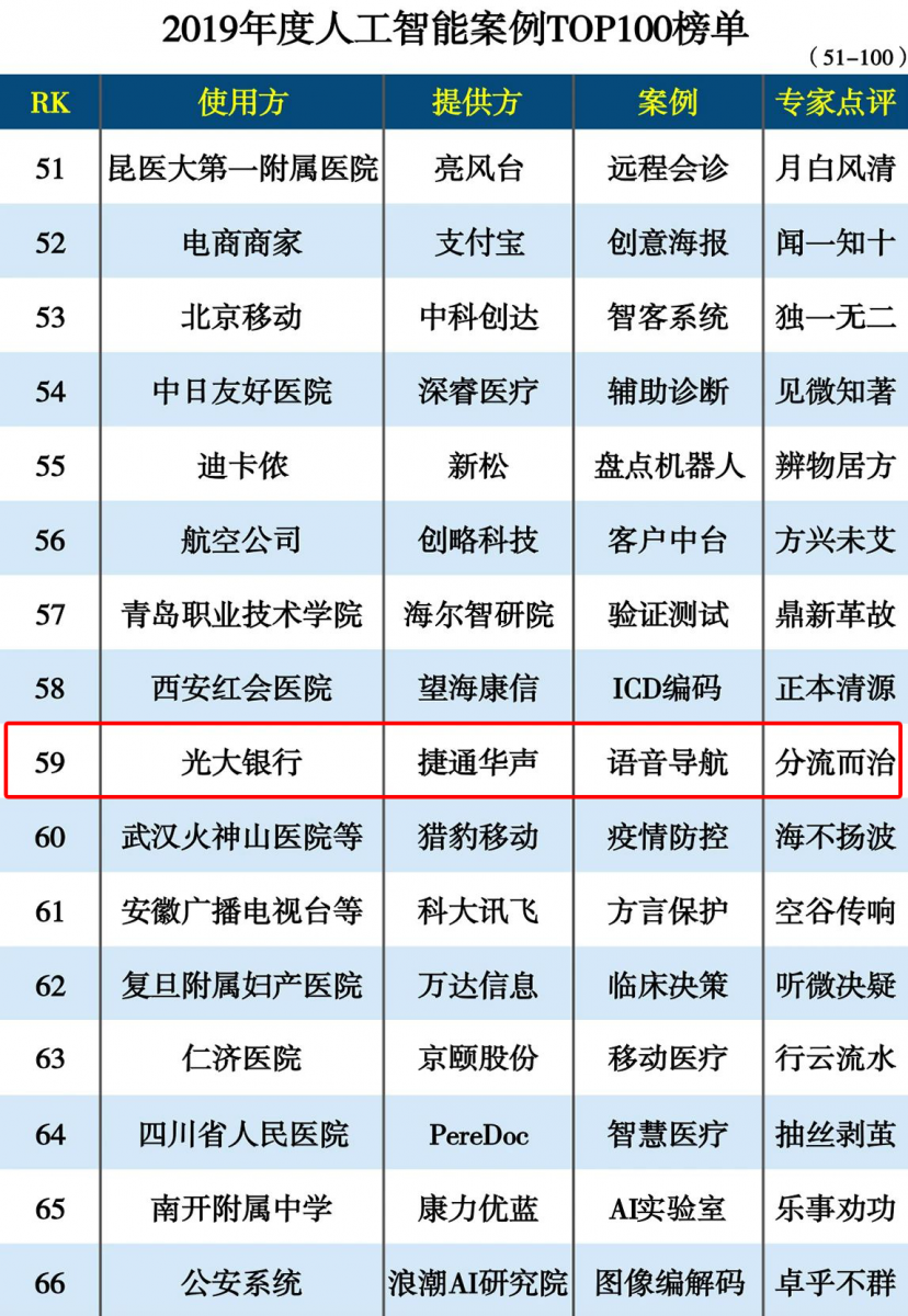 近日,由中國科學院《互聯(lián)網(wǎng)周刊》、eNet研究院評選的“2019年度人工智能案例TOP100”發(fā)布,捷通華聲靈云智能語音導(dǎo)航系統(tǒng)憑借在光大銀行落地應(yīng)用的出色表現(xiàn),成功上榜。