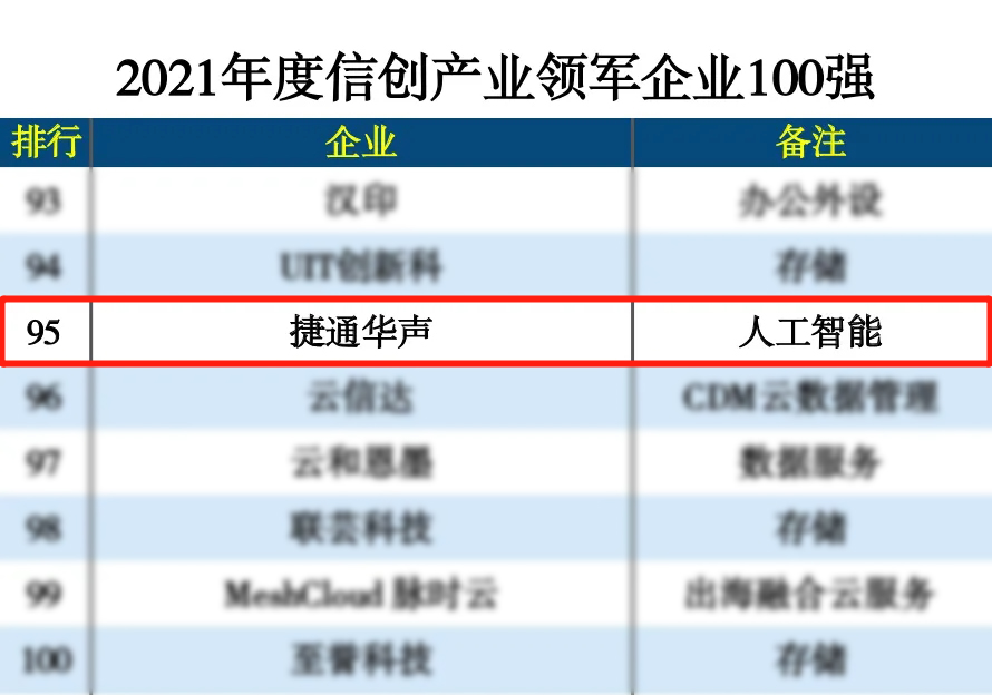 捷通華聲入選2021信創(chuàng)產(chǎn)業(yè)領(lǐng)軍企業(yè)100強(qiáng)