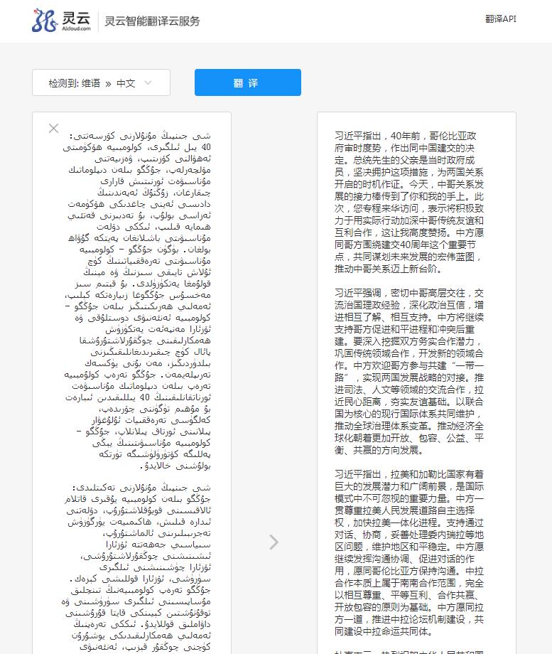 近日,捷通華聲靈云翻譯云(translate.aicloud.com)重磅升級,推出篇章級中英、中維互譯。地道流暢的翻譯效果,忠實(shí)表達(dá)了原文內(nèi)容,靈云翻譯云為商貿(mào)、旅游、政企辦公、一帶一路等場景提供便捷的翻譯服務(wù)。