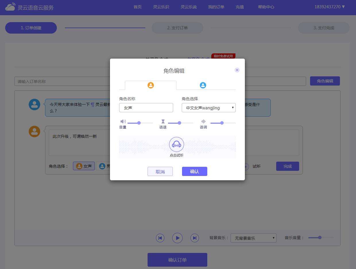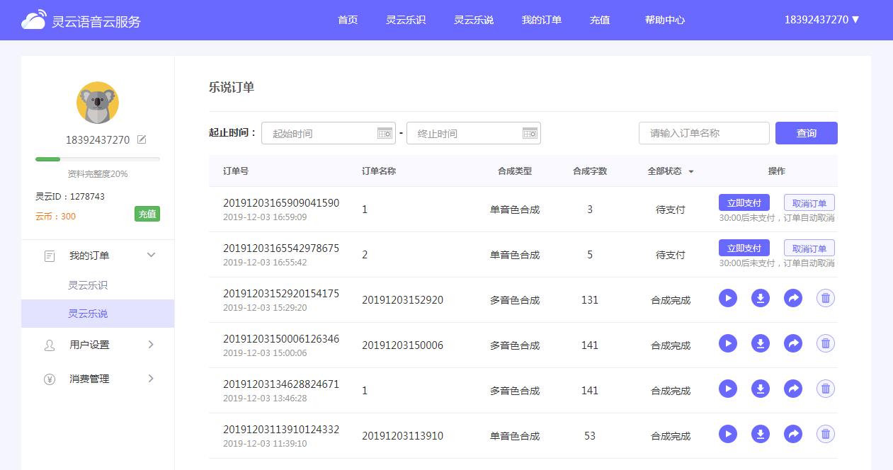 新增“我的訂單”頁面,將用戶賬號、靈云樂識樂說任務(wù)及訂單等多個界面整合在一起,為用戶提供了極大的便利。