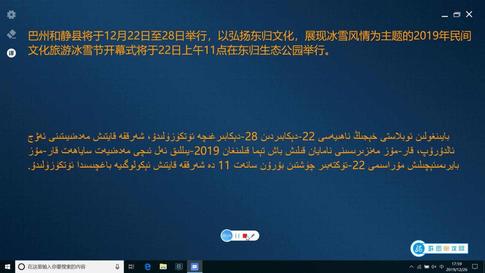 在大型發(fā)布會、國際會議、學(xué)術(shù)研討會等場景,除了字幕要求外,往往還有翻譯要求。基于機器翻譯能力的靈云智聲一體機,提供中英、維漢互譯功能,以雙語字幕形式呈現(xiàn),在語言不通的情況下實現(xiàn)雙方的無障礙溝通,實時率、準確率Carry全場。