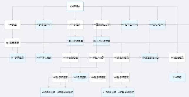 針對(duì)不同業(yè)務(wù)的特定需求,靈云智能外呼提供有設(shè)計(jì)嚴(yán)謹(jǐn)?shù)膶?duì)話邏輯流程圖。人機(jī)對(duì)話過程中,機(jī)器人會(huì)按照預(yù)設(shè)的邏輯進(jìn)行提問,客戶的回答由基于NLU技術(shù)的智能問答功能進(jìn)行理解,并跳轉(zhuǎn)到相應(yīng)的下一個(gè)問答節(jié)點(diǎn),直至完成詢問過程?蛻暨可以根據(jù)業(yè)務(wù)特點(diǎn),對(duì)對(duì)話邏輯進(jìn)行可視化編輯、修改和優(yōu)化。