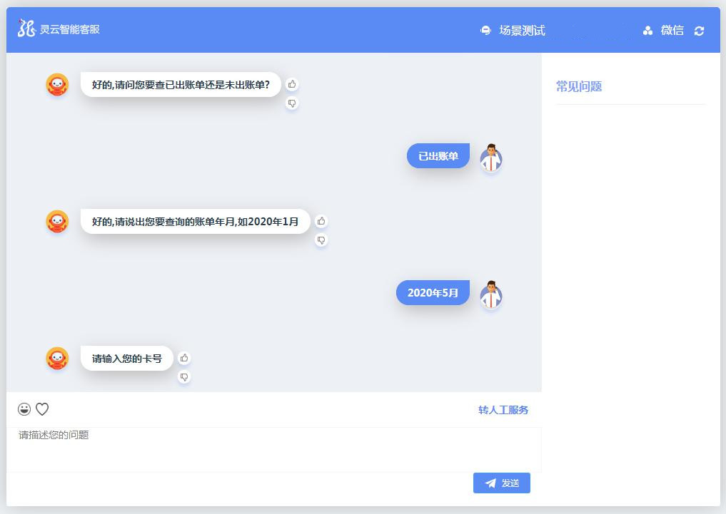 靈云智能客服機(jī)器人支持對話場景設(shè)計(jì),對需要辦理業(yè)務(wù)的用戶,提供完整的對話流程交互。