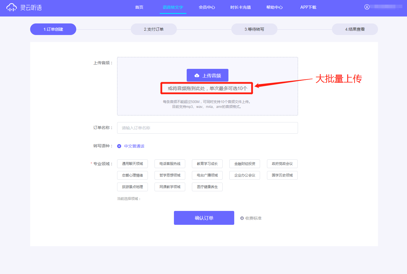 Web端用戶面臨的情況與App端用戶不同,找到文件并不難,難的是當(dāng)你要轉(zhuǎn)寫大量音頻的時候,需要多次經(jīng)歷上傳文件、支付訂單、等待轉(zhuǎn)寫、查看編輯和導(dǎo)出下載等操作流程。靈云聽語Web版支持批量音頻上傳,最多一次性同時上傳10個音頻,節(jié)省操作頻次和時間。