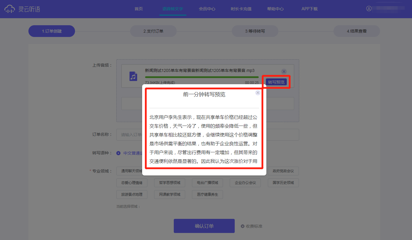 有些用戶在使用錄音軟件和設(shè)備時,沒有編輯名稱的習(xí)慣,所有錄音都是系統(tǒng)自動匹配的名稱,在轉(zhuǎn)寫前還需要一個一個打開聽,很是麻煩。靈云聽語Web版提供轉(zhuǎn)寫預(yù)覽功能,音頻上傳完即可查看前一分鐘語音轉(zhuǎn)寫結(jié)果,方便用戶確認(rèn)音頻內(nèi)容。