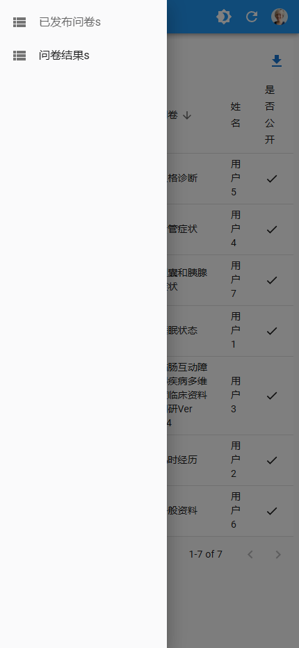 2. 量表結(jié)果頁面:用于查看患者填寫的量表內(nèi)容及其公開狀態(tài),支持快速篩選與結(jié)果導出。