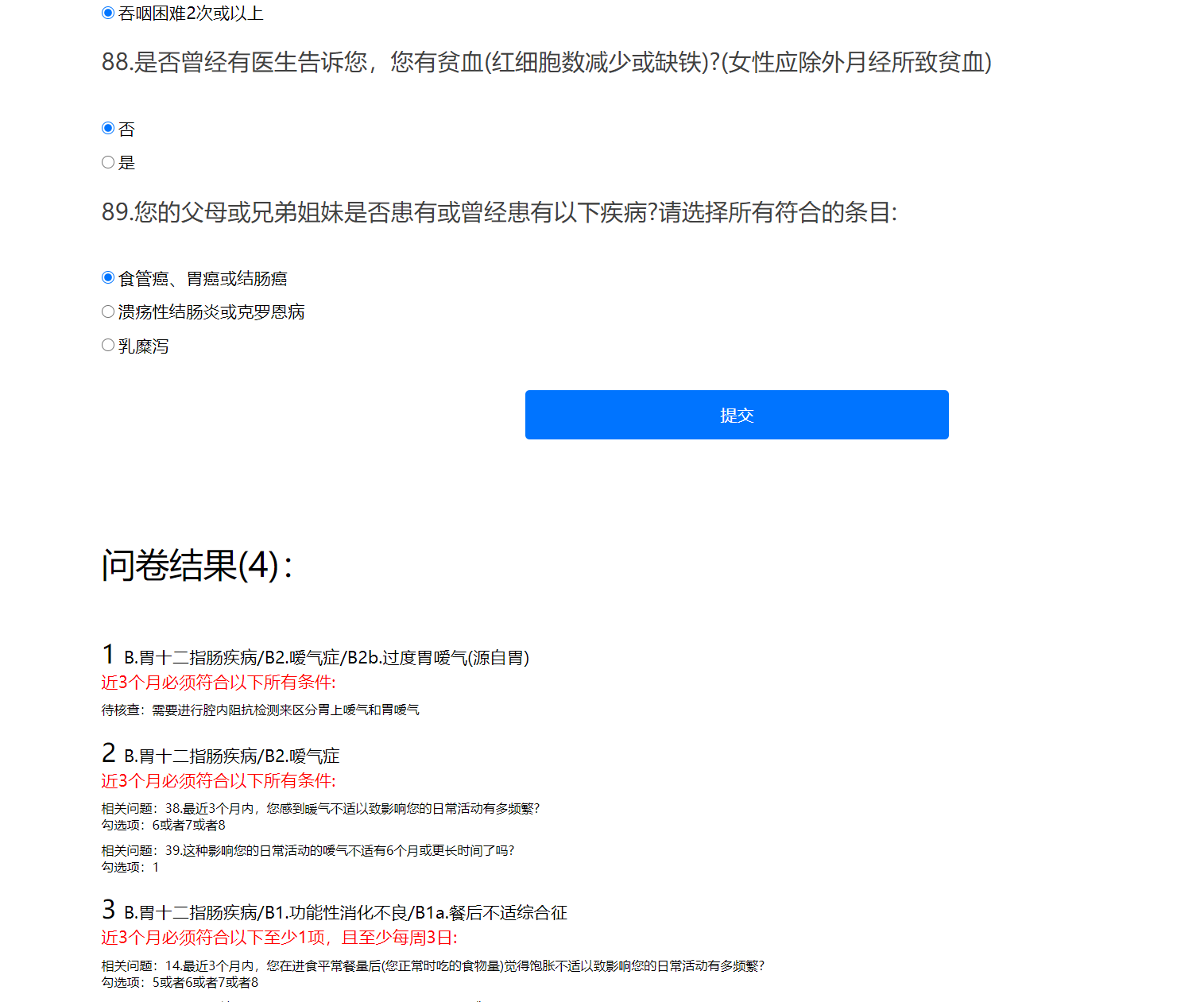 在“量表結(jié)果”頁面,展示患者填寫的量表內(nèi)容。